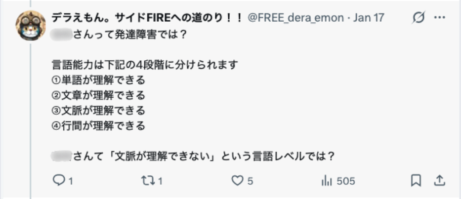 面白いのは、こうした攻撃的な反応こそが、私が提示した「③文脈理解」の欠如を完璧に体現している点です。