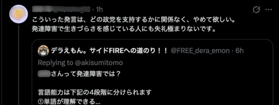 私の投稿の趣旨は、あくまで「構造的分析」です。発達障害を貶める意図など微塵もありません。